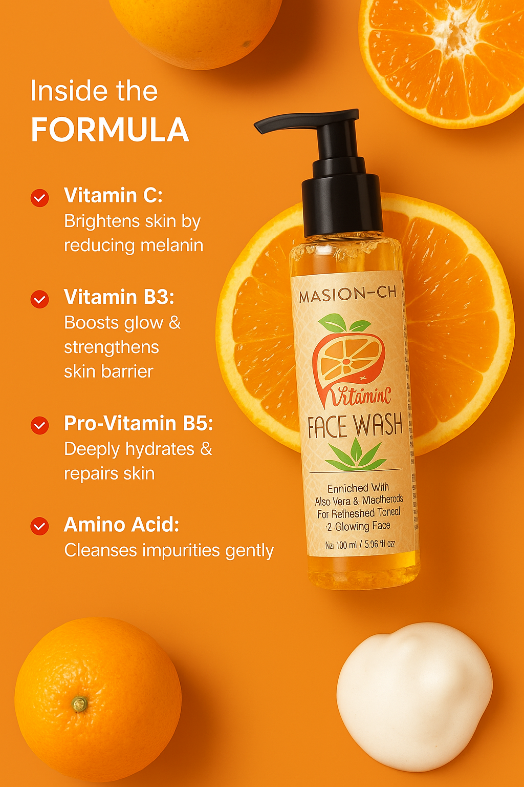 Masion – Ch Vitamin C face wash offer several benefits for the skin due to the properties of vitamin C, a powerful antioxidant.