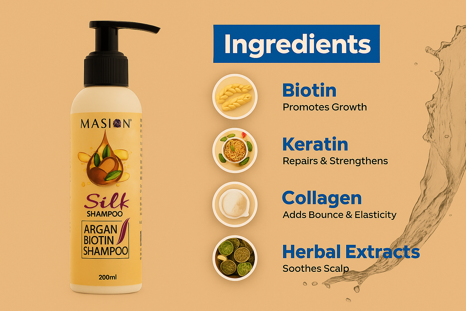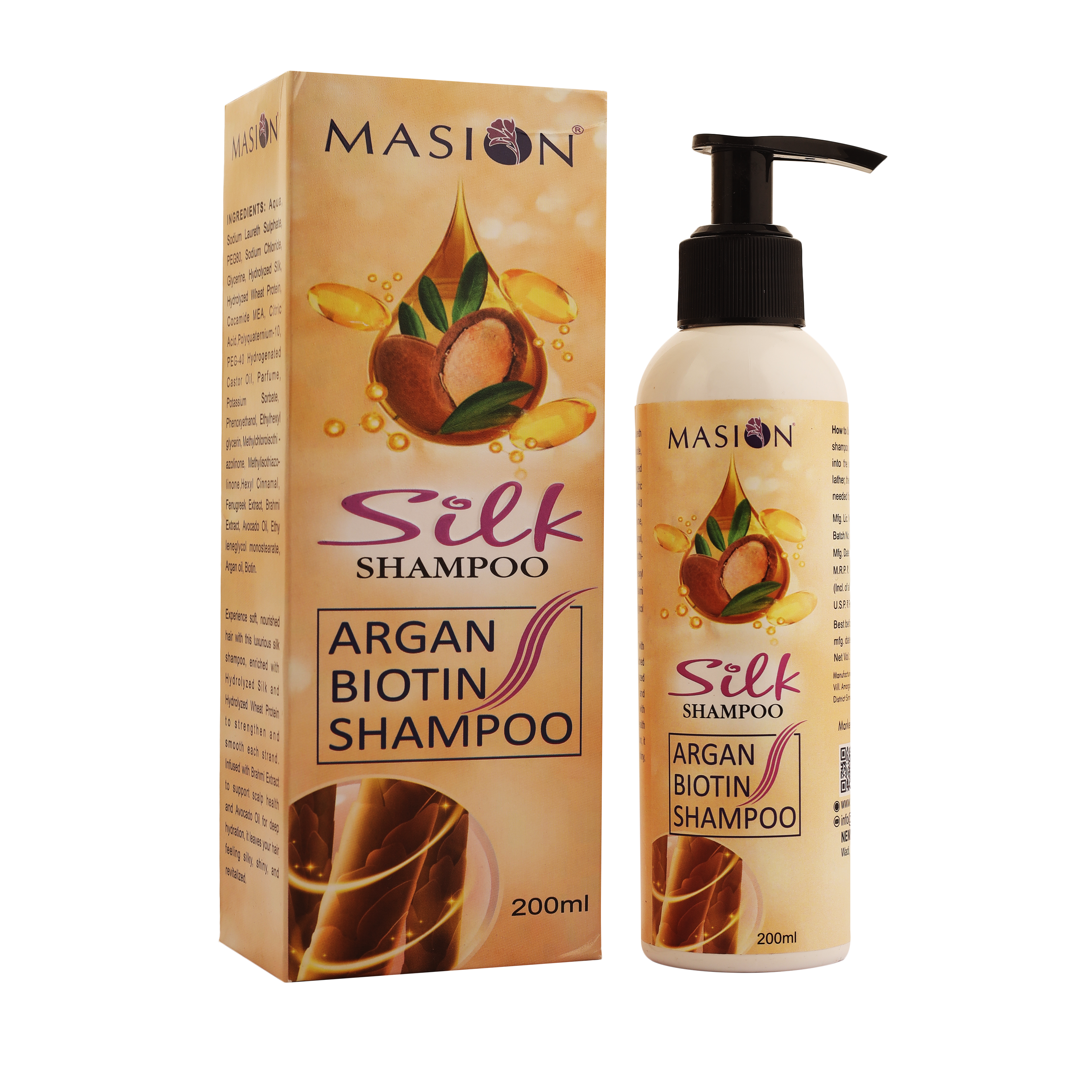 Powered by Nature. Perfected by Masion. Elevate your haircare ritual with a shampoo that blends luxury and performance. Masion Silk Shampoo is enriched with Argan Oil, Biotin, Fenugreek, and Avocado Oil Extract — a powerhouse blend designed to leave your hair strong, smooth, and radiant.