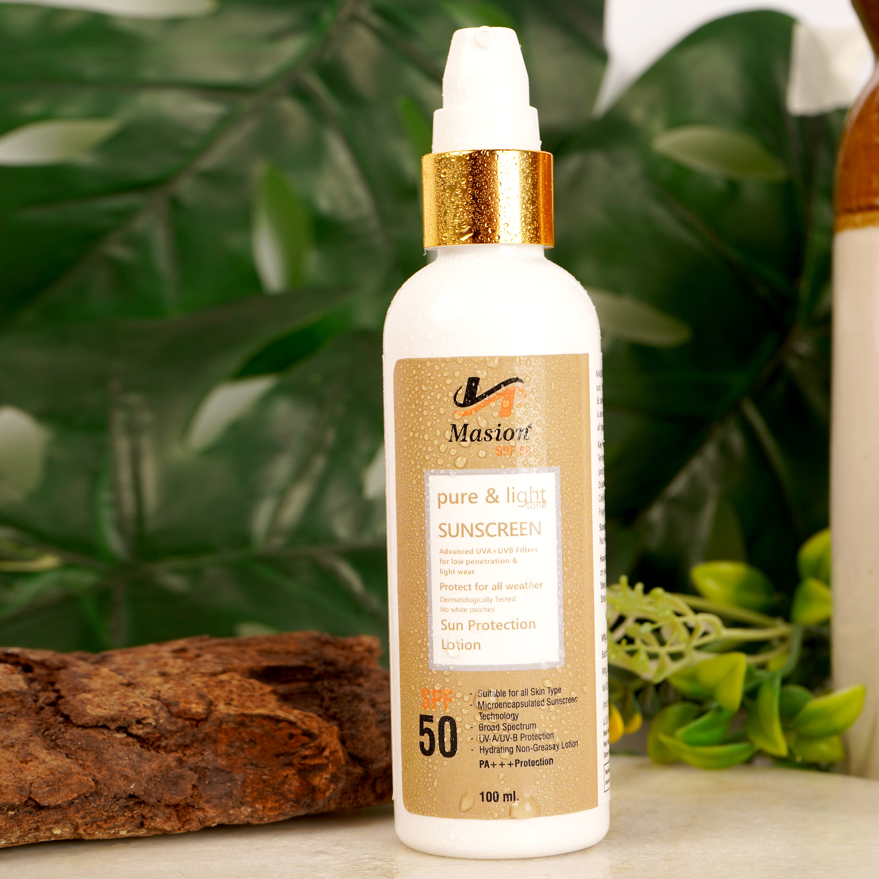 Introducing Masion Sunscreen 50 SPF– a new generation lightweight sunscreen lotion that cares and protects your skin from harmful rays of UVB.